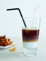 Les conseils de Cooking2000 : Pour conserver une franche séparation des couleurs noir et blanc, faites couler l'expresso sur le glaçon