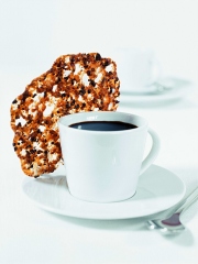 Incorporez les grains de café, les noisettes, les amandes, tous trois concassés en petits morceaux de 1 mm de côté.