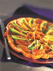 Disposez les quartiers de pommes et de kiwi dans un moule à manqué.