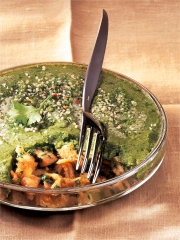 Verser dans un plat à gratin et recouvrir avec le mélange des 2 purées.