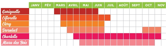 Disponibilité : de mars à début novembre (jusqu'aux premières gelés)