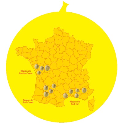 Aujourd'hui, les 3 bassins de production sont le Centre-Ouest, le Sud-Ouest et le Sud-Est, où les cultures en plein air se développent fortement.