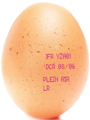La mention BIO ou LR (Label Rouge) peut être présente sur l'oeuf.