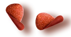 Couleur franche, forme ondulée, texture craquante. Au contact du palais, le