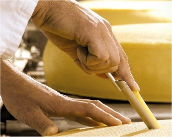 Depuis toujours, les Maître-Affineurs pratiquent le "carottage" des meules de Comté pour juger de