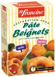 2 sachets permettent de faire 40 beignets. Ces beignets peuvent être salés ou sucrés.