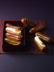 Présentation : 12 mini-éclairs sur un plateau doré - 200 g.