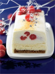 mousse aérienne, le croustillant d'une base de biscuit aux spéculos et la douceur fruitée des framboises.