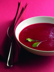 Servez ce potage bien glacé avec des fines tranches de jambon Serrano.