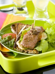 Les conseils de Cooking2000 : Pour transformer les tartines en sandwich, recouvrez le steak d'une tranche de pain, puis coupez en croix pour