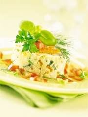 Ingrédients pour la sauce : 50 g de dés de tomates 10 g d'aneth haché 60 g de crème ½ jus de citron sel poivre