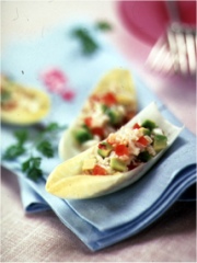 Prenez les feuilles d'endive, tapissez le fond d'un peu de yaourt assaisonné, puis remplissez du mélange à base de crabe.