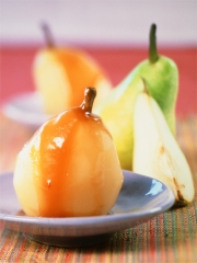 Egouttez les poires et servez-les tièdes avec le caramel au gingembre.
